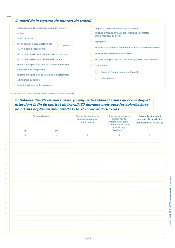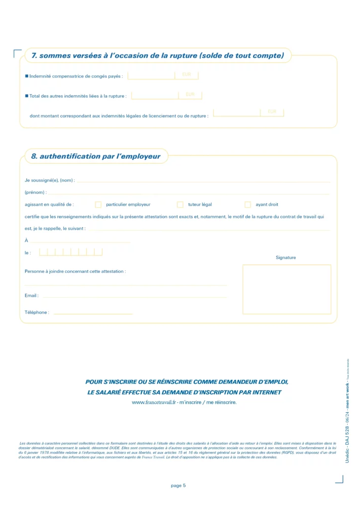 Cette indication est très importante, car elle va influencer le calcul de l’indemnisation chômage de la salariée. Remplissez-la avec soin.